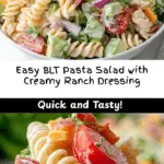 A delicious and creamy BLT pasta salad combining rotini pasta with crispy bacon, cheddar cheese, fresh vegetables, and a homemade ranch dressing for a perfect side dish or light meal.