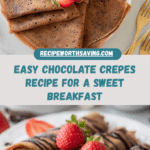 Roll them up with cream cheese and berries inside for a decadent dessert wrap, fold them into neat triangles stacked with layers of Nutella and bananas, or even cut them into strips to use as a chocolatey topping for yogurt or smoothie bowls. The Chocolate Crepes Recipe is your canvas—get creative and enjoy the fun of presentation.