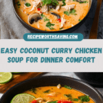 There is something deeply satisfying about a bowl of this Coconut Curry Chicken Soup Recipe. It’s a dish that feels like a warm hug on a busy day, yet is so vibrant and flavorful that you’ll find yourself craving it over and over. Give it a try—it’s simple, nourishing, and downright delicious. Once you have a batch simmering in your slow cooker, you’ll see why it’s become such a beloved favorite!