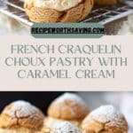 Craquelin Choux Pastry with Salted Caramel Cream is a show-stopping dessert that brings together crispy shells, a delicate crackly topping, and rich, silky caramel cream. While it takes some time to prepare, the result is an impressive French-inspired treat that’s perfect for special occasions or whenever you want to wow your guests with homemade patisserie.