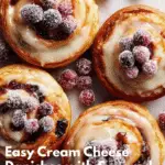 Delight in these Cream Cheese Danishes topped with homemade sugared cranberries and a smooth vanilla butter glaze. Flaky crescent roll dough envelops a creamy sweetened cream cheese filling, enhanced by seasonal jam and a crisp tart cranberry finish. Perfect for a cozy brunch or an indulgent breakfast treat, these danishes combine layers of texture and flavor in just 30 minutes.