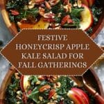 Nutty Harvest Honeycrisp Kale Salad is a festive fall salad featuring massaged kale, crisp apples, sharp white cheddar, smoky honey pepitas, spiced pecans, and a warm cinnamon shallot vinaigrette. Bursting with flavor and texture, it’s the perfect side dish or hearty salad for holidays, gatherings, or cozy dinners.