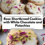 Delight in these elegant Rose Shortbread Cookies that marry the buttery richness of classic shortbread with a floral hint of rose water. Each cookie is dipped in smooth white chocolate and garnished with fragrant dried rose petals and crunchy pistachios, making them perfect for special occasions or a sophisticated treat.