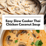 This Slow Cooker Tom Kha Soup is a rich and creamy Thai-inspired coconut chicken soup infused with aromatic herbs like lemongrass, galangal, and lime leaves, balanced perfectly with red curry paste, lime juice, and fish sauce. It’s a comforting, flavorful dish that’s easy to make using a slow cooker, ideal for busy days or when you want to enjoy authentic Thai flavors with minimal effort.