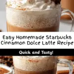Enjoy a cozy and flavorful Starbucks-style Cinnamon Dolce Latte made quickly at home. This comforting latte combines rich espresso with warm cinnamon, nutmeg, vanilla, and a touch of brown sugar, topped with whipped cream and a sprinkle of cinnamon for the perfect sweet and spicy treat.