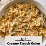This French Onion Pasta pairs beautifully with crisp green salads dressed lightly with lemon vinaigrette, which cut through the richness nicely. Roasted vegetables, such as asparagus or Brussels sprouts, also make for a hearty accompaniment. If you want to keep things cozy, a warm rustic bread will soak up any leftover sauce and complete the meal.
