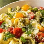 This quick and easy Tortellini Pasta Salad is a perfect vegetarian summertime side dish. Featuring fresh tortellini, juicy cherry tomatoes, artichoke hearts, and a vibrant pesto vinaigrette, it comes together in just 20 minutes and can be chilled for a refreshing finish. With less than 10 ingredients, this salad is both simple and flavorful, ideal for lunch or a light dinner.
